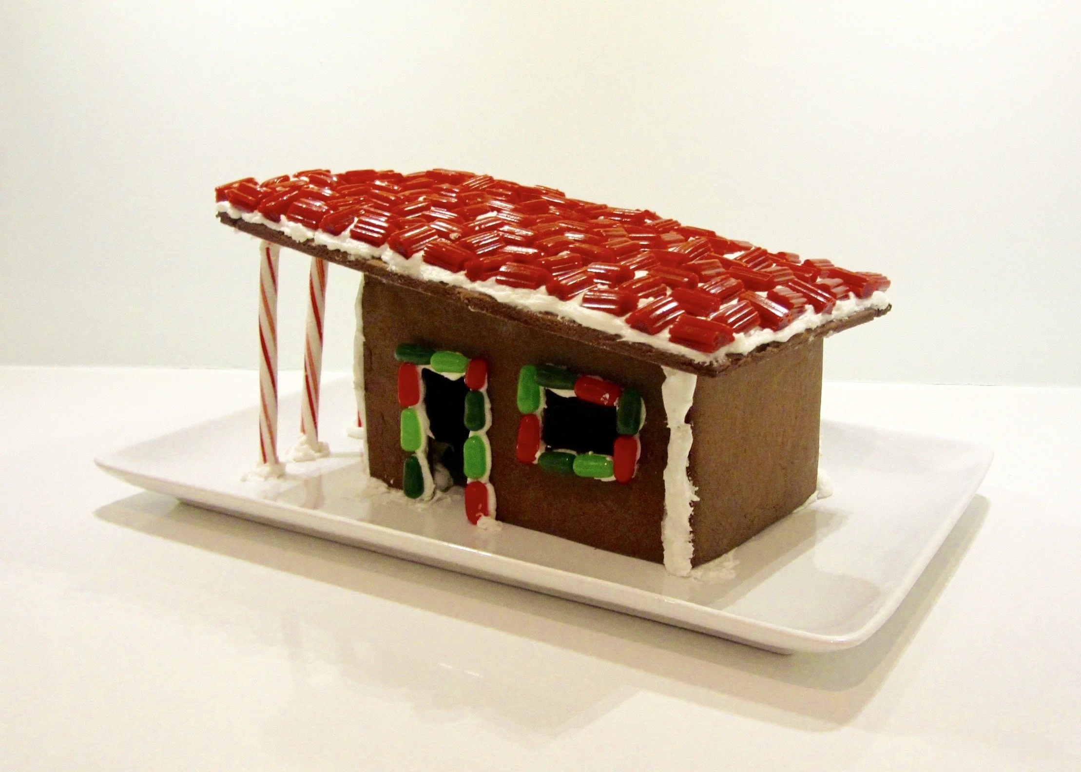 i can’t remember when i started making gingerbread houses… it’s probably an extension of my love of my childhood dollhouse. i do know that baking them with my children is one of my favorite christmas traditions. they are messy and sticky and my kitchen gets a thorough dusting of powdered sugar every year, but the extra mopping and wiping is worth it. we eat way too much candy, lick loads of frosting off our fingers (i always tell our recipients not to eat them, just use them as decoration!) and we usually feel a bit sick afterward. some years are more structurally successful than others - more than one house has had to make due with a cardboard wall as a result of a “kitchen earthquake.” the candy roof design has evolved as well. in the early days they were a kaleidoscope of random candies and today there is careful thought put into the layout of licorice squares, lifesavers, gumdrops and mike and ikes. the recipe is the same as the modern one we did last year… just a more traditional pattern.