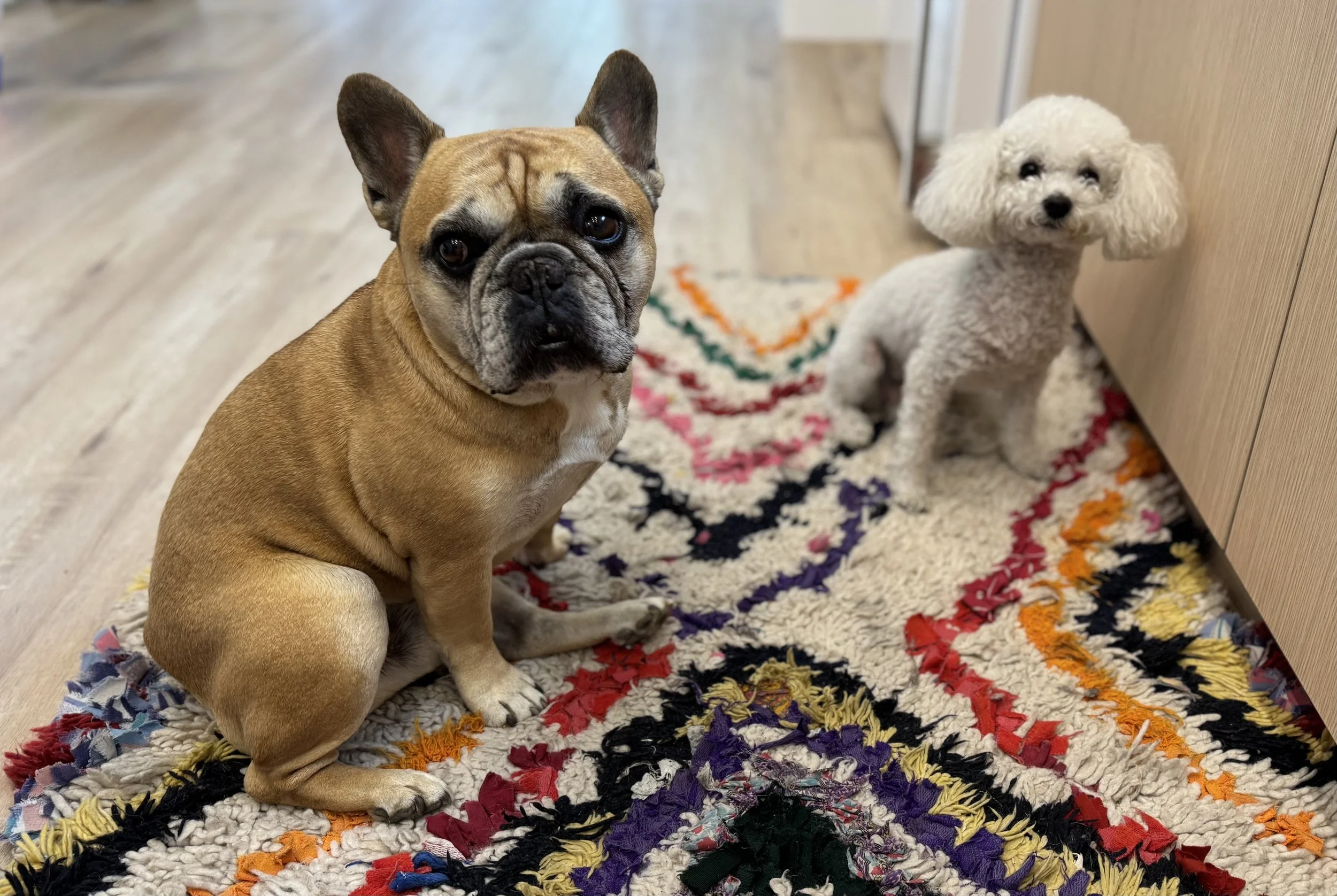 (hank and rosie getting used to each other and sitting on the same rug!)