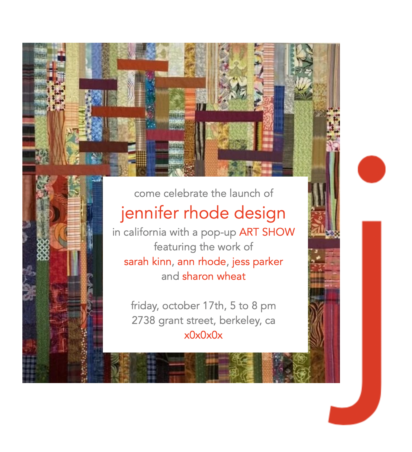 come to a POP-UP ART SHOW featuring ann rhode's quilts (and to celebrate jennifer rhode design launching in california!) x00xx October 11, 2025