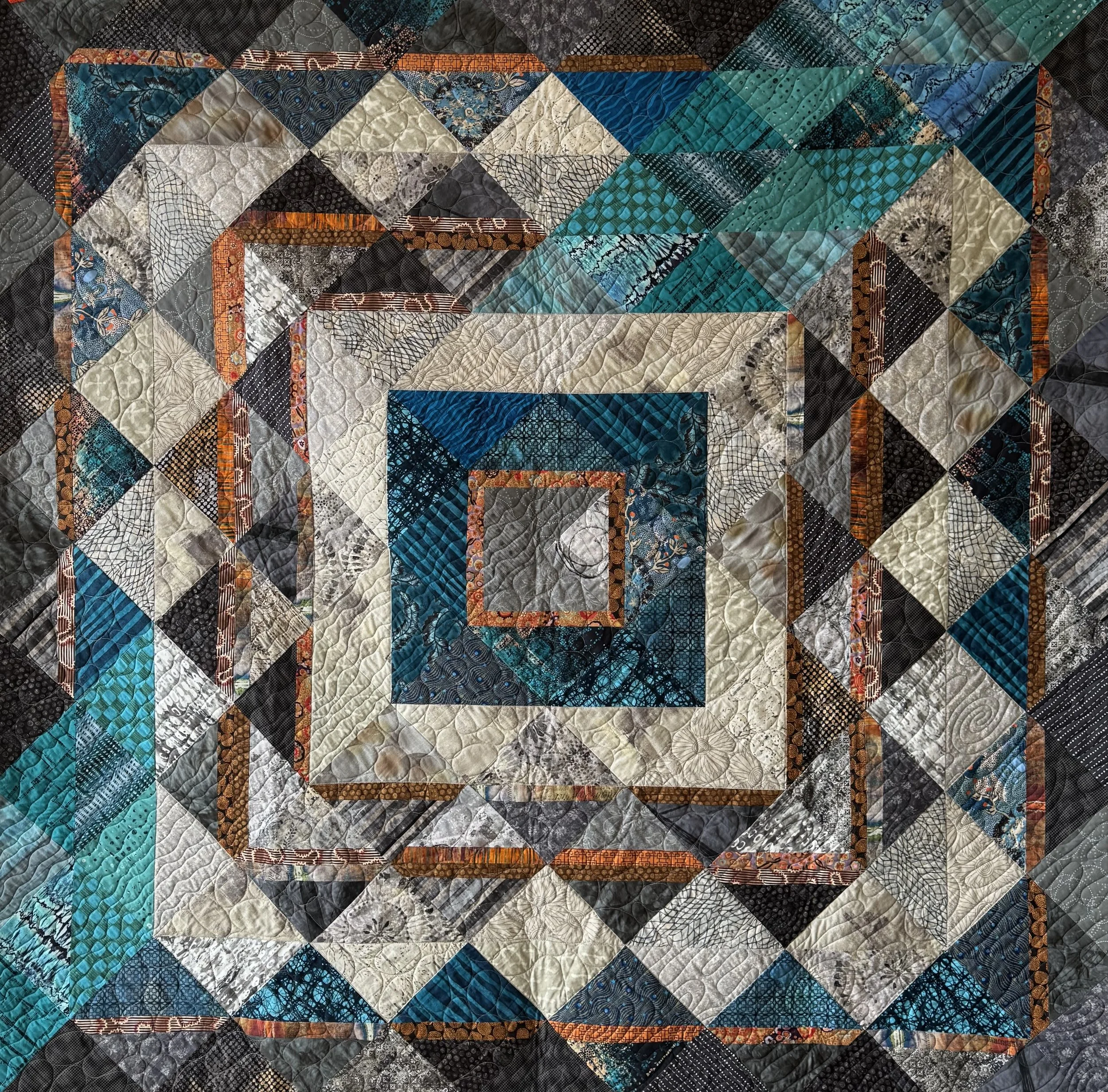 river run is machine pieced and machine quilted by annette chavez fountain. fabrics and batting are all cotton.