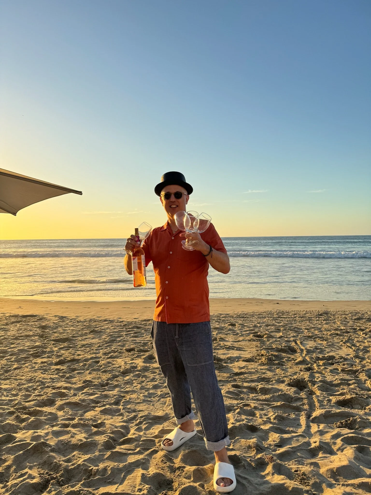 frequent dabs of sunscreen in at least one ear (generally, his intense relationship with sunscreen)