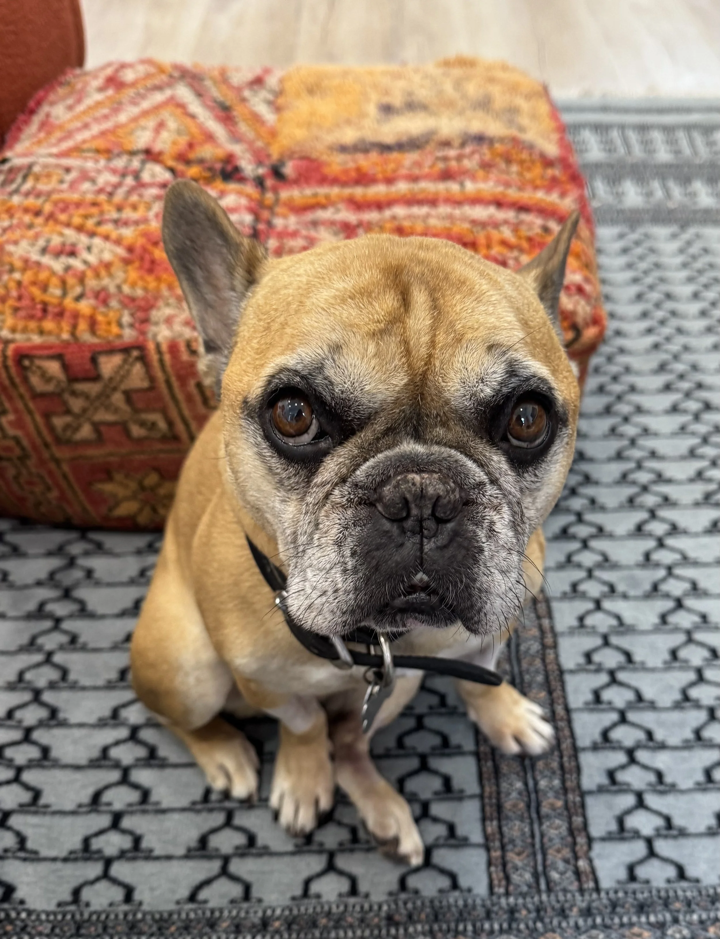 i left in tears after he was whisked away for testing and evaluation. once home, i went to work cleaning up his vomit, which was all over the place, and i discovered a tiny bit of apple. i immediately called the vet to tell them that might be the culprit and sure enough they found an apple chunk stuck in his esophagus that had not been visible on his scan. while removing the chunk DID help, he had already coughed and wheezed so much that he had inhaled vomit into his lungs, which is dangerous for anyone, but especially for a smush face dog. they put him on all kinds of antibiotics and meds to sooth his throat, help him breath and calm him down, but they were not at all confident he would pull through. as the treatments and tests piled up, they asked for an additional deposit and told me to keep my phone on. i got a call at THREE in the morning from the doctor asking if they had permisison to intibate him (and for another deposit!) OF COURSE, i said, and just lay in my bed worried beyond belief and thinking until it was finally morning. i started to imagine his shiva (the jewish mourning tradition) and thought i would have it in the dog park at dusk so his local friends could pay their respects, but i was worried about his boulder pals, especially louie next door… could i have a zoom shiva for them? obviously, this is not the helpful, positive kind of thinking i should have been doing, but i was trying to prepare myself.