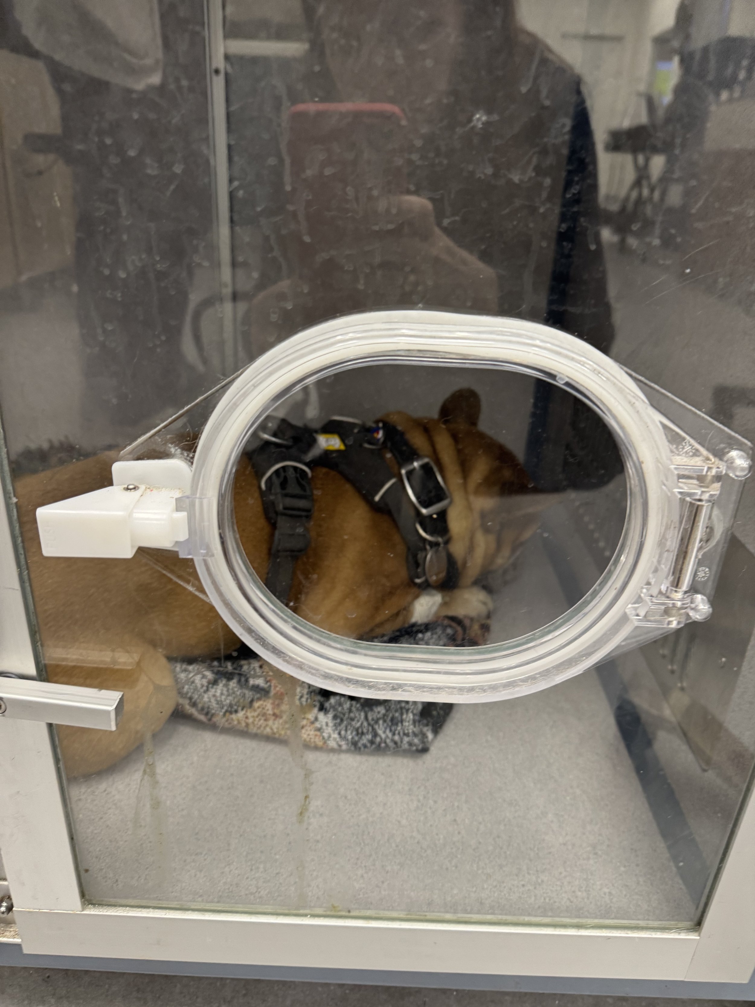 (hanky in the special oxygen tank… he was so miserable he couldn’t even turn around and look at me…)