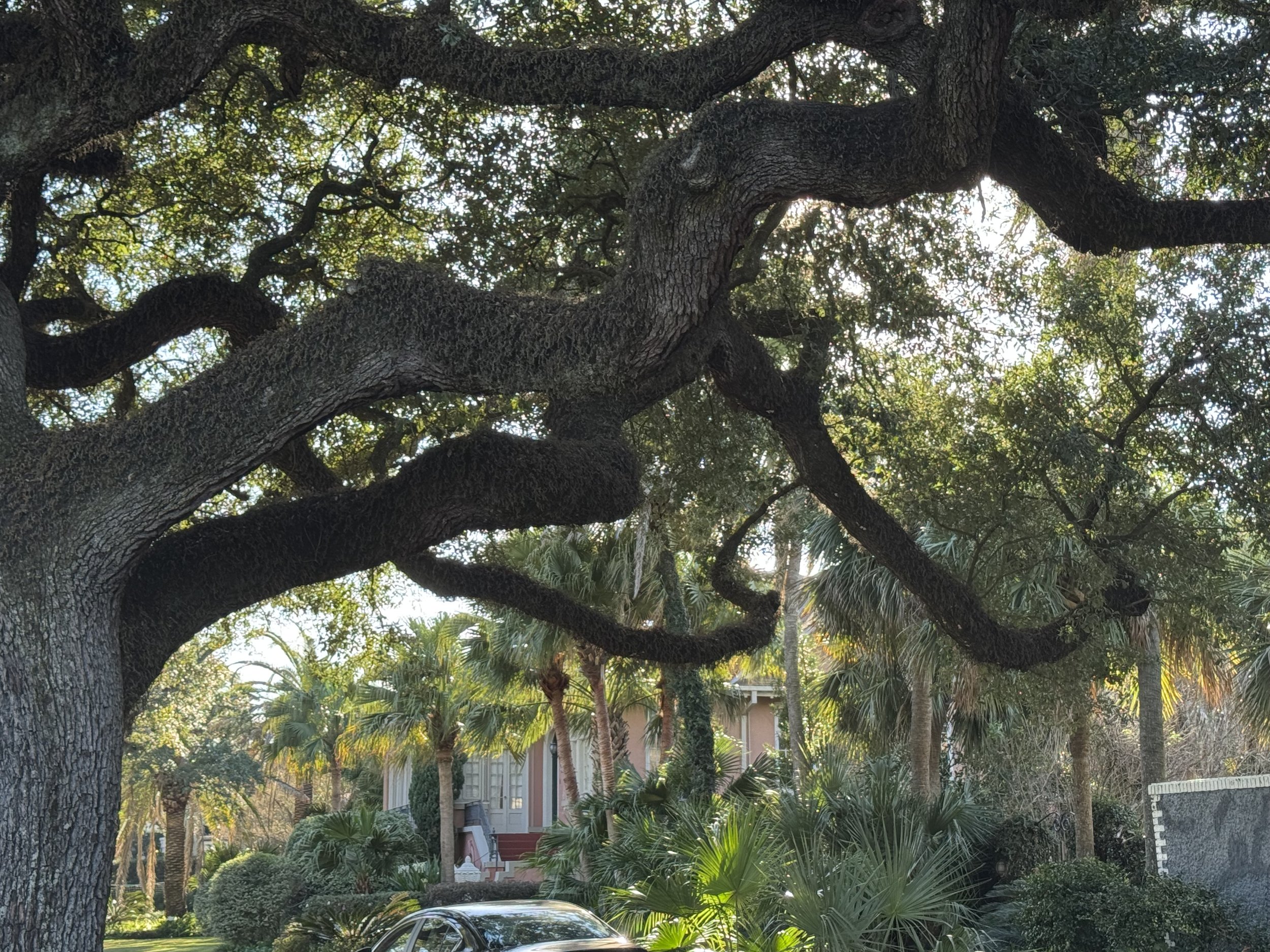 INCREDIBLE OAK TREES hanging with moss lining so many streets and all over the campus.