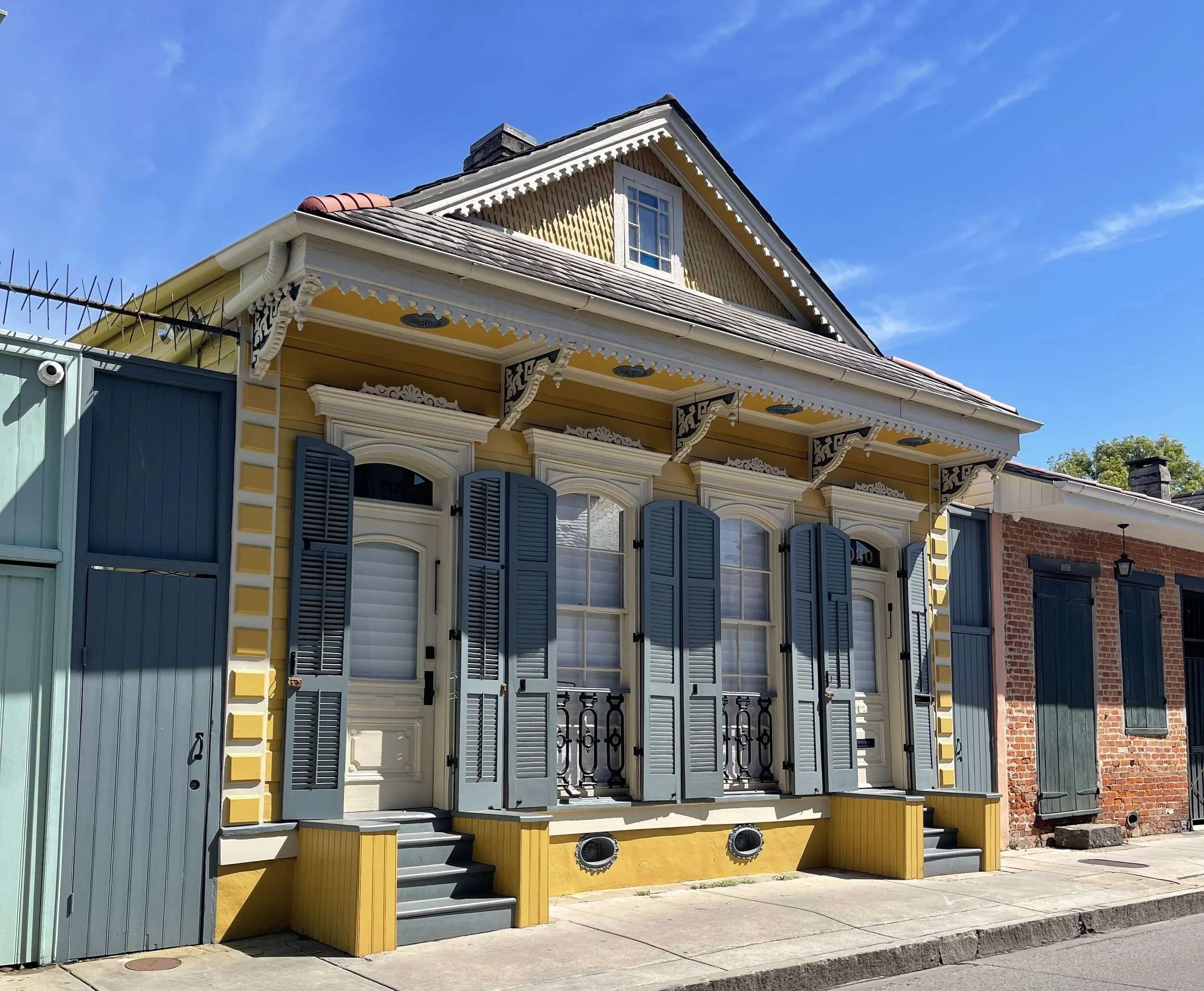 PRETTY HOUSES (lots are even PINK!) with wrought iron railings and balconies.