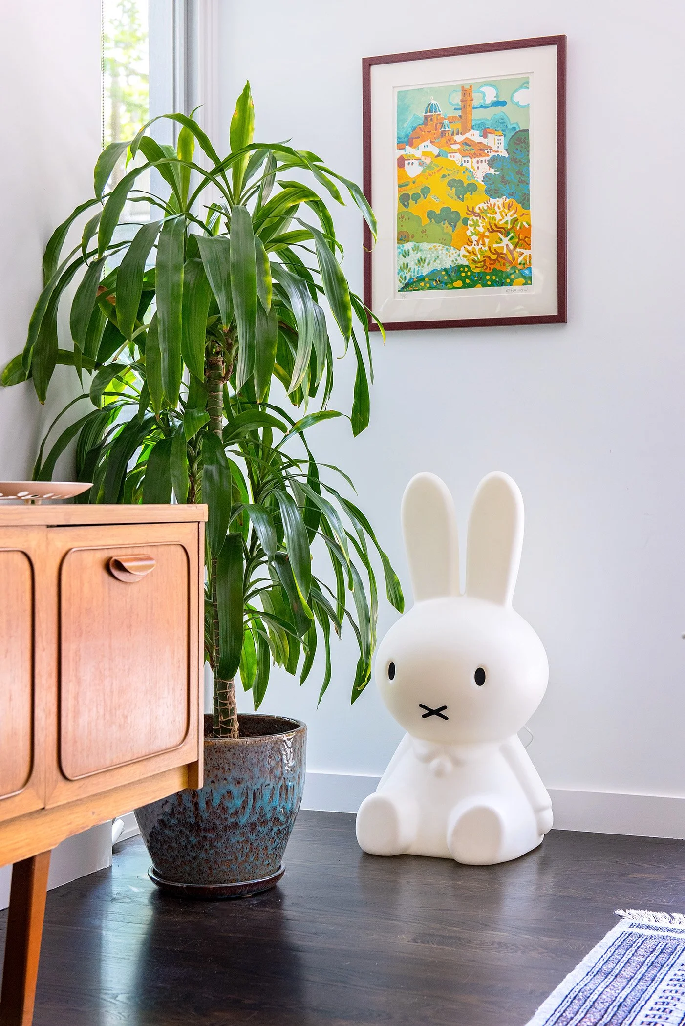 4. PLANTS PAIRED WITH ART: placing a plant (or two!) in concert with an art piece adds layered texture to the room.