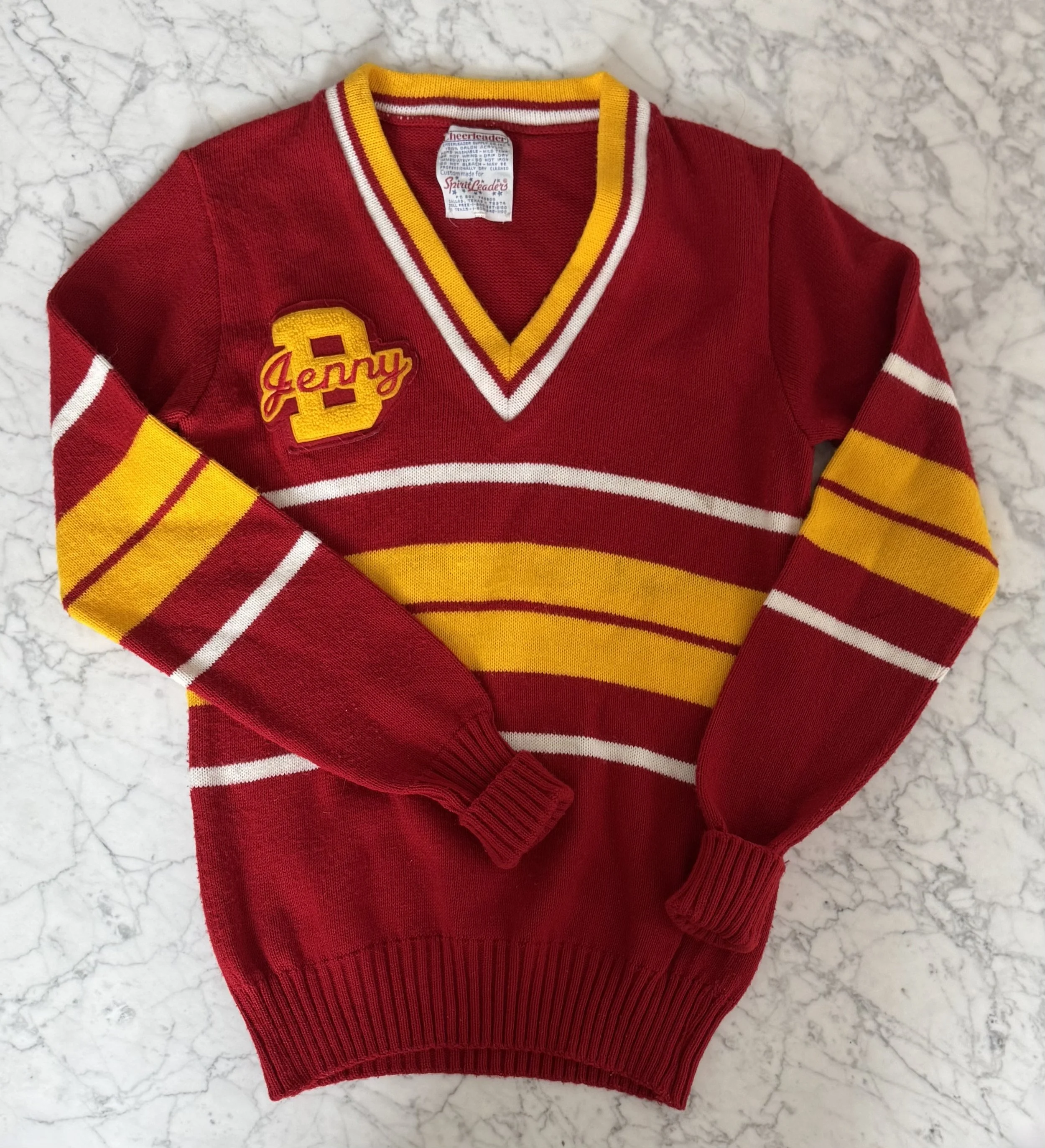 (my giant cheer sweater with “jenny” on the front…)
